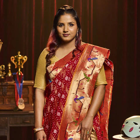 RED Mangalkari Viscouse Silk Print n Weaving Work
